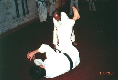 Sensei shows Tim Richardson a closer view of the floor.