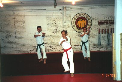 Sensei Odo demonstrating Passai with Todd&Allison Hand.